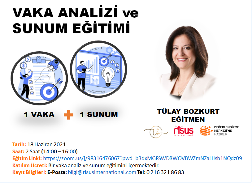 Genel Katılıma Açık Vaka Analizi ve Sunum Eğitimimiz 18 Haziran 2021 Cuma günü 14.00 – 16:00’da Online olarak gerçekleştirilecektir.