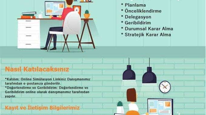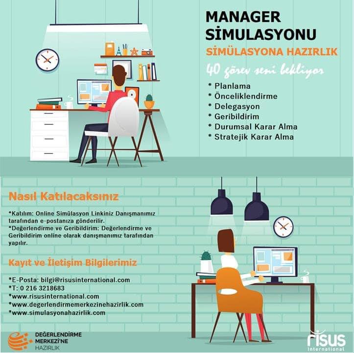 Simülasyon süresince bir şirket içinde senden beklenen Planlama, Delegasyon, Geribildirim, Önceliklendirme, Durumsal Karar Alma gibi farklı görevleri 5 Modül içinde toplam 6 saat süresince gerçekleştireceksin.